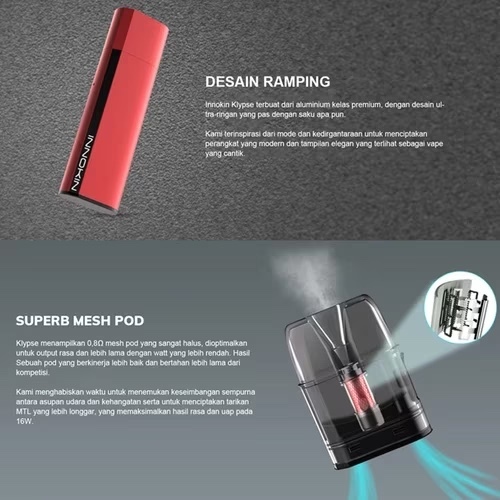 INNOKIN Klypse Pod 是一款專為方便和便攜性設計的電子煙裝置,適合新手和有經驗的使用者。這款 Pod 系統不僅提供出色的性能,還在使用和維護上極具便利性。