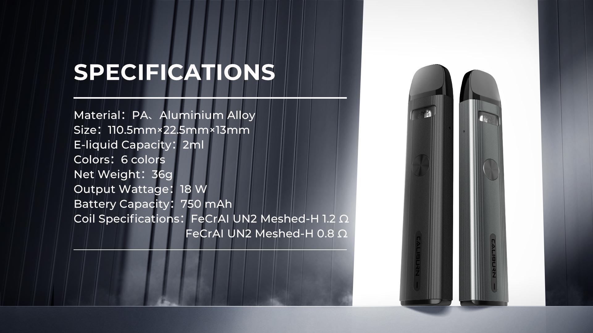 Caliburn G 配備可更換的 0.8Ω 和 1.0Ω 線圈,以滿足不同消費者對煙量和口感的不同需求。